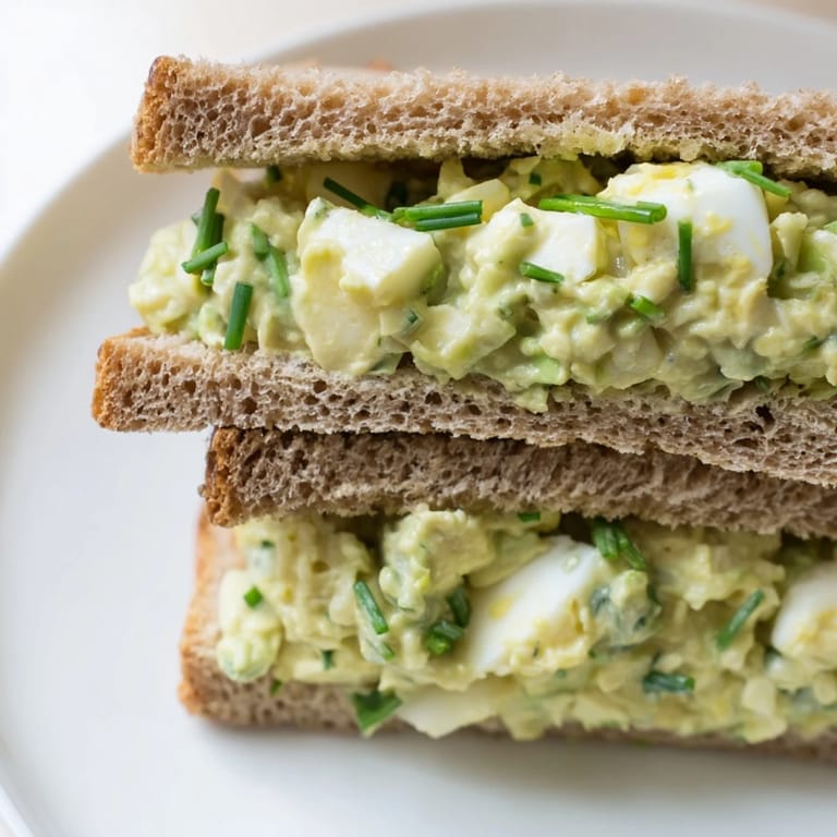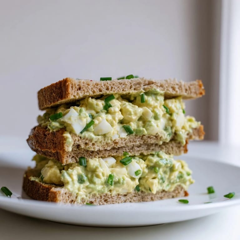 Save I was standing in front of my fridge on a Tuesday afternoon, staring at a carton of eggs and a lone avocado that was perfectly ripe. I had promised myself a real lunch instead of another handful of crackers eaten over the sink. That's when I remembered an old coworker who used to bring egg salad that somehow tasted lighter and brighter than anything I'd made before. She swapped out half the mayo for mashed avocado and a squeeze of lemon, and suddenly egg salad felt less like a church potluck relic and more like something I actually craved.