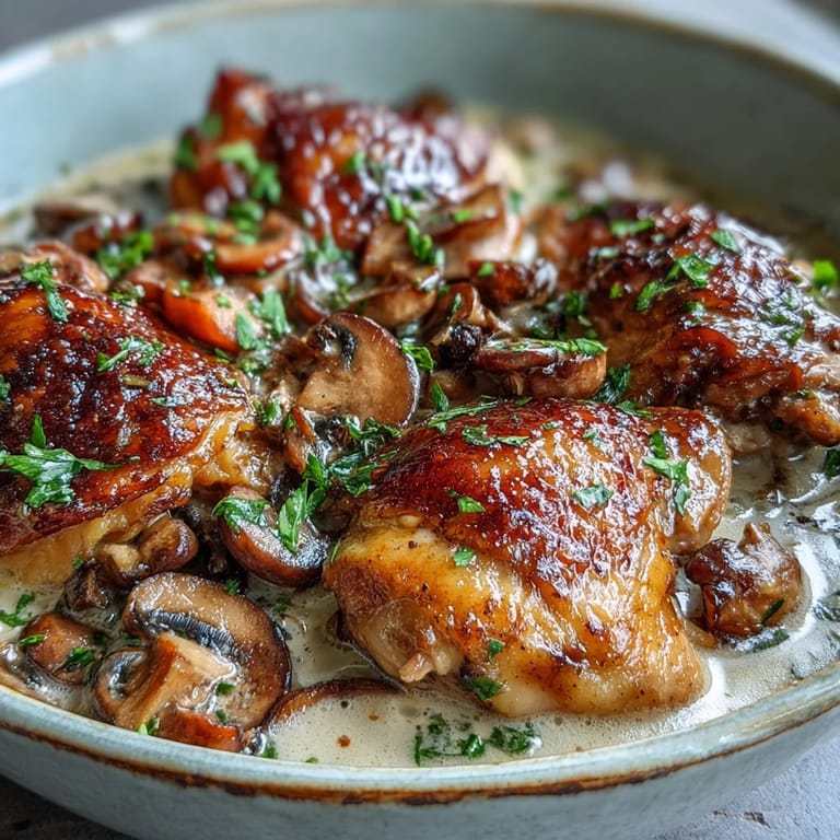 This dish begs for something to soak up all that gorgeous sauce. I usually serve it over buttery mashed potatoes or tender boiled fingerlings, but it's just as good with crusty bread, egg noodles, or even a pile of creamy polenta. Rice works too, especially if you want to keep it simple and let the chicken shine. A crisp green salad on the side with a sharp vinaigrette cuts through the richness and makes the meal feel balanced. If you're feeling fancy, roasted asparagus or haricots verts add color and a little snap.