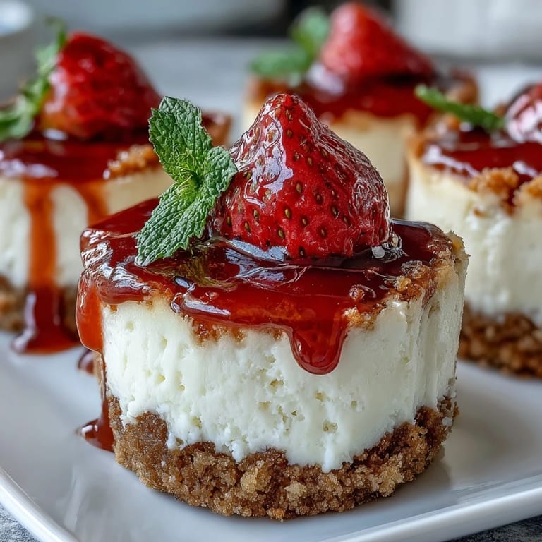Save My neighbor handed me a plate of these tiny cheesecakes at her housewarming party, and I ate three in a row without thinking. That crisp graham cracker bottom gave way to creamy filling so perfectly balanced it felt almost unfair that something bite-sized could taste this complete. She laughed when she caught me eyeing the last one, and by the end of the night I had the recipe written on the back of a napkin. Now I make them whenever I need to feel like I've pulled off something impressive without actually spending hours in the kitchen.