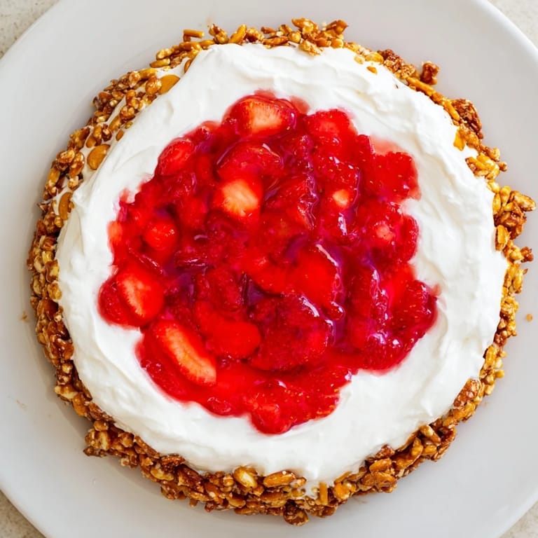 Save There's a moment every summer when someone brings strawberry pretzel salad to a family gathering, and suddenly everyone stops mid-conversation to grab a slice. I discovered this dessert at a Fourth of July potluck where I watched people abandon their manners entirely—forks were abandoned, sneaky fingers reached for seconds. The combination of that salty pretzel crunch giving way to cool, creamy sweetness, then the bright strawberry Jell-O hit me like a flavor revelation. That night, I realized this wasn't just a dessert; it was the kind of dish that makes people remember you showed up.